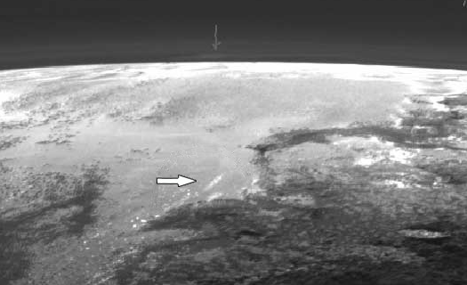 Nasan New Horizons -luotain on saattanut kuvata Pluton jäisen pinnan yllä leijuvia pilviä.