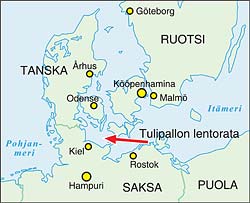 Tanskan tulipallo päätyi Itämeren ylle