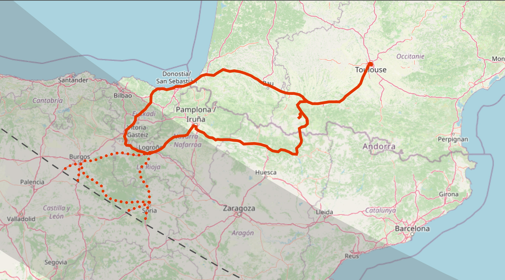 Ke 12.8. – Pimennyspäivä Hotelliaamiainen ja varautuminen pimennykseen. Sääolojen salliessa pimennys näkyy täydellisenä hotellipaikkakunnalta. Pyrimme kuitenkin siirtymään busseilla lähemmäs pimennyksen keskilinjaa. Yöksi paluu Logroñoon. Pimennys Logroñossa: Alkaa 17.33, päättyy 19.21; täydellinen vaihe 18.28–18.29, kesto 1 min 21 sek. Keskilinjalla (arvioitu havaintopaikka): Alkaa 17.33, päättyy 19.22; täydellinen vaihe 18.28–18.30, kesto 1 min 48 sek. | ![]() |