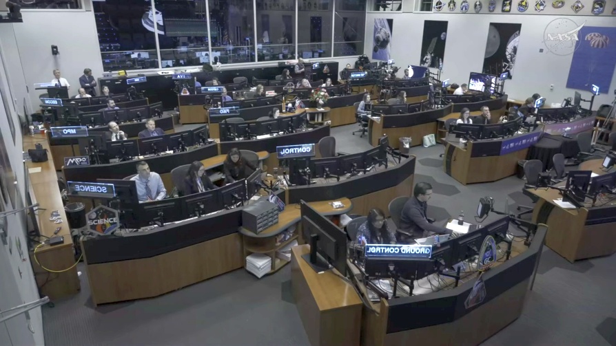 Lennonjohto odottaa yhteyden palaavan noin 40 minuutin kuluttua. Kuva Nasa