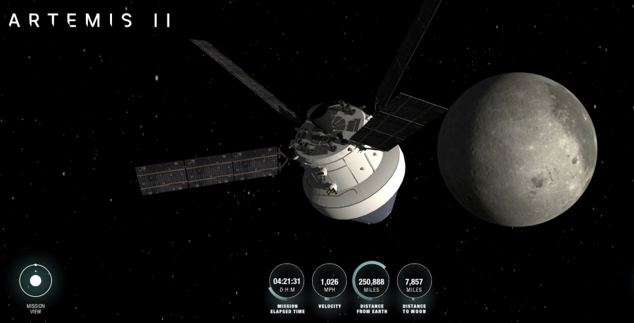 [23.10] Nasa ylläpitää jatkuvasti päivittyvää simuloitua näkymää Orion-aluksen sijainnista. Sitä pääset katsomaan tästä. Laajemmin lennon tilannetta voi tutkia Nasa Eyes on the Solar System -sovelluksella.