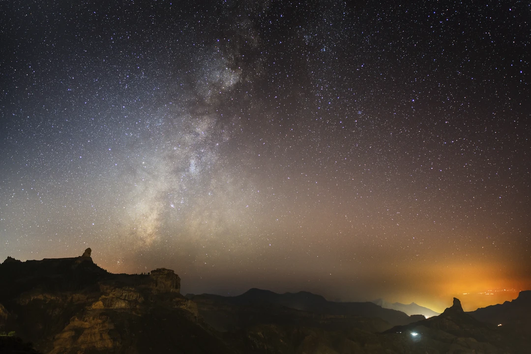Linnunrata näkyi hienosti Gran Canarian vuoristosta 1600 metrin korkeudesta. Vasemmalla näkyy Rogue Nublo ja oikealla Rogue Bentayga -vuorenhuiput.