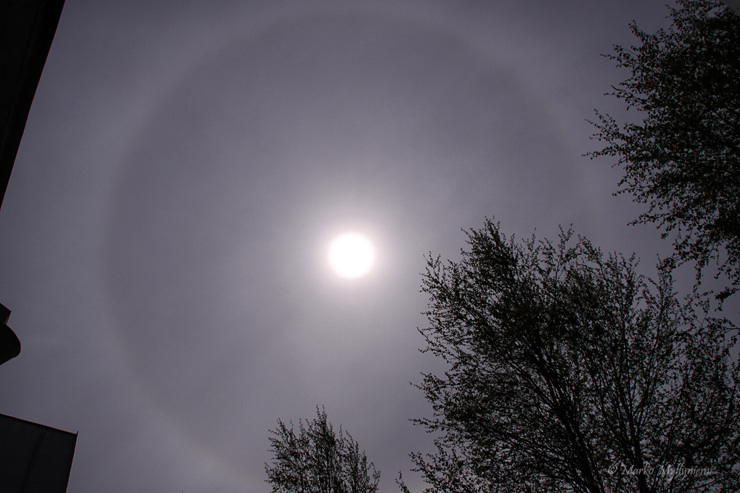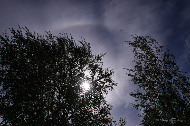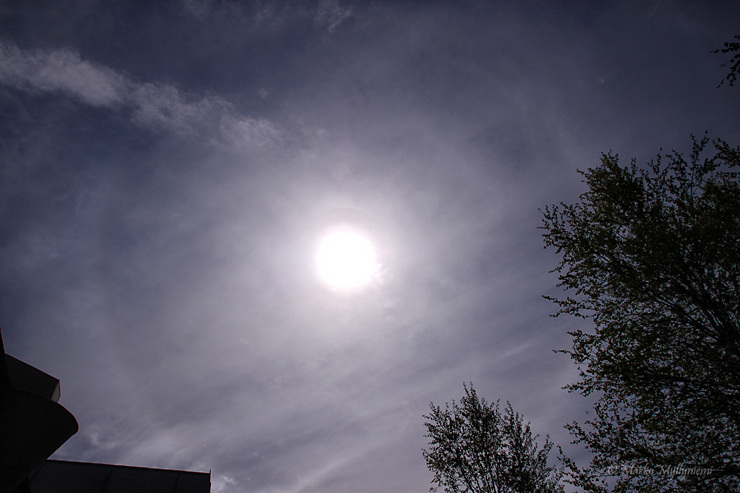 Kahtena päivänä 25.5 ja 26.5 on näkynyt 22° halo, Aurinko tässä kuvassa 40° korkeudella horisontista. 5DMarkII, 17mm objektiivi aukolla 8, iso 200, 1/8000 sek.