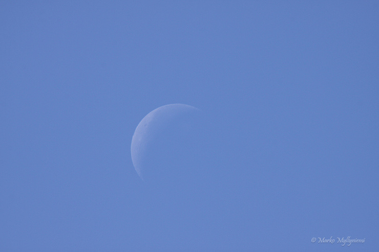 Kyllä tuo kapean kuunsirpin kuvaaminen päivällä on täyttä tuskaa. :angry: Kontrasti ei riitä millään.