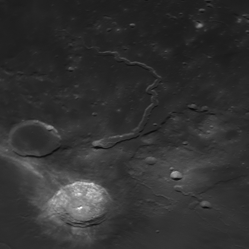 En päässyt samaan skaalaan kuin Kankaanpään Jari, enkä ole varma onko tässä yhtään enempää detaljeja kuin JariG:n pienempiskaalaisessa mutta terävämmässä kuvassa, mutta valaistuskulma on eri (hankala) ja paljastaa tuolta Vallis Schröterin pohjalta tuollaisen pikkurotkon.