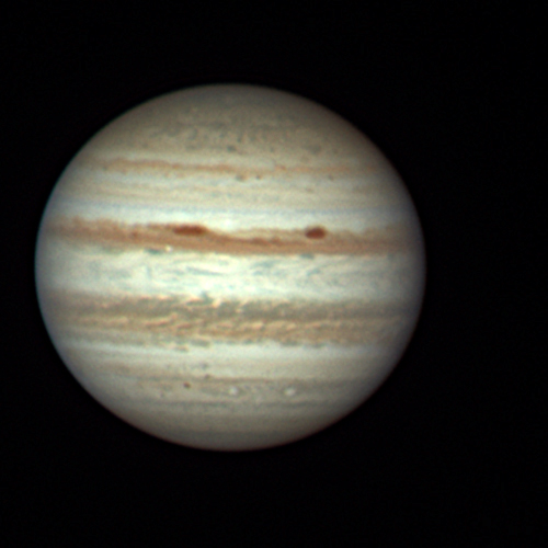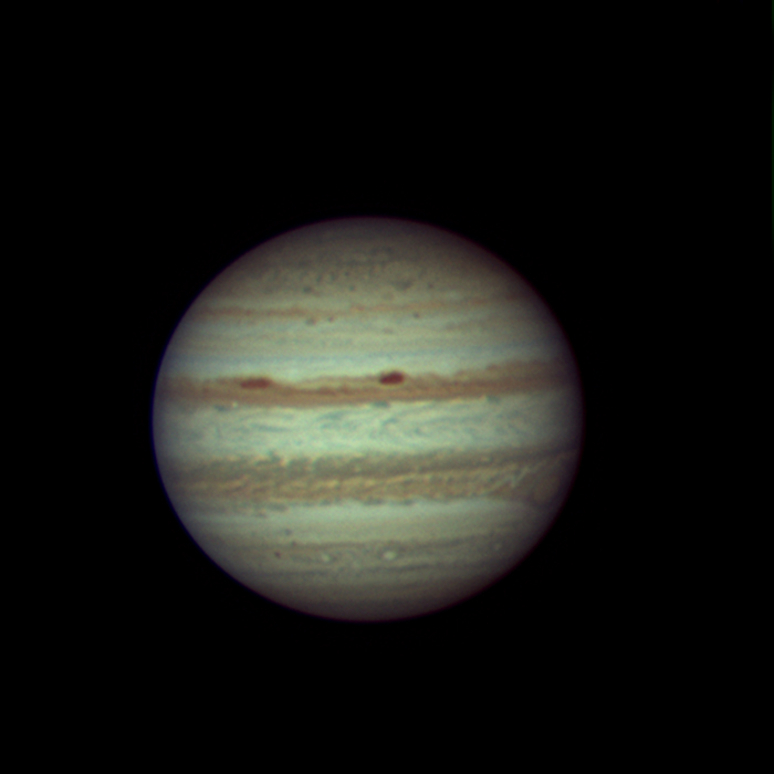 Yksi RGB-sarja tuotti drizzlellä 700 pikselin levyisen Jupiterin. Taustoineen se täytti 23" näytön ja oli mahtavaa katseltavaa reilun metrin päästä :grin: