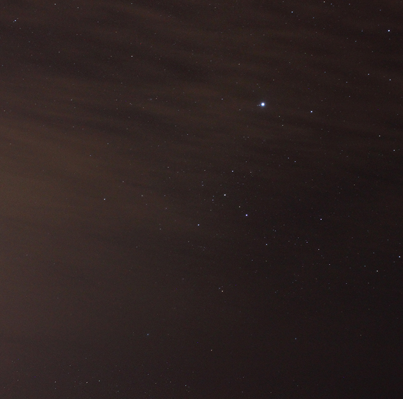 Lähdin yön selkään ajelemaan pimeälle paikalle tarkoituksena kiikaroida eteläisiä näkymiä. Sopiva paikka löytyi, joskin paikalla oli paikallisen nuorison pippalot jossain harjanteen takana. Pari pippaloita etsivää autokuntaa pelotin punaisine otsalamppuineni karkuun kun luulin harrastajatovereiksi, ennenkuin tajusin että on Launatai-ilta ja kuulin popin jytkeen harjanteen takaa. Ehdin nostaa kiikarit silmille ja bongata M41:n ja M93:n, kun jotenkin niin tuttuun tapaan pilvet vyöryivät näyttämölle: