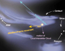 Tänään ilmestyneen Nature-lehden mukaan aurinkokunta kulkee valtavan tähtienvälisen kaasupilven sisällä. Kokoa tällä harvalla pilvellä on jopa 30 valovuotta. Pilvi koostuu 6000-celsiusasteisista vety- ja helium-atomeista.