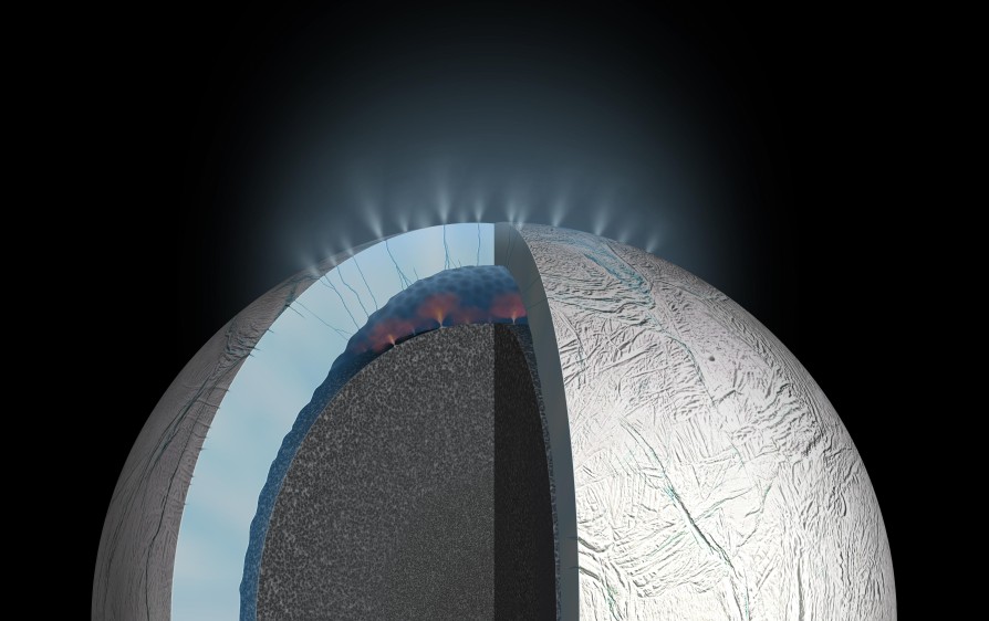 Saturnuksen Enceladus-kuu on aurinkokunnan kiinnostavin paikka valtamerielämän etsimiselle Jupiterin Europa-kuun ohella. Halkaisijaltaan Enceladus on vain 500 kilometriä. Sen etelänavan alueelta avaruuteen suuntautuu ainesuihkuja, jotka antavat tietoa pinnanalaisista olosuhteista.