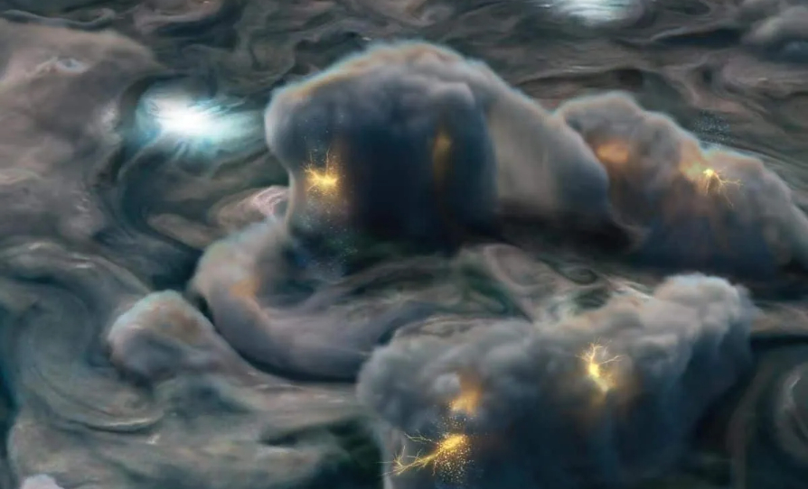 Jupiterissa myrskyt ja salamat toimivat hieman eri tavalla kuin täällä. Planeetan kaasukehä koostuu suurelta osin vedystä, joka on hyvin kevyttä. Siksi kostea kaasu tuntuu painavammalta ja sitä on vaikeampi saada nousemaan ylös.