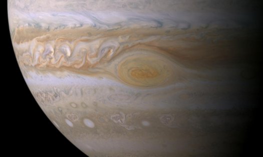 "Mallimme mukaan Suuri punainen pilkku on oikeastaan melko väritön ylimmän pilvikerroksensa alla", kuvailee Kevin Baines JPL:stä. "Punaisen 'auringossa palaneen' pintansa alla pilvet ovat todennäköisesti valkoisia tai harmaita."