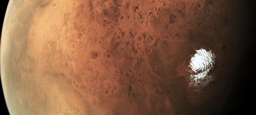 Kuvassa erottuu kirkkaana Marsin eteläinen napajäätikkö, joka koostuu sekä vesi- että hiilidioksidijäästä. Yleensä Mars Express -luotaimen kuvat on otettu suoraan alaspäin eikä niissä näy planeetan horisonttia.