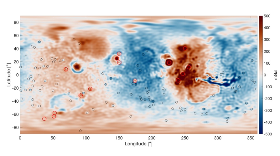 Punaista planeettaa muokkaavat prosessit ovat piilottaneet monia sen muinaisista pinnanmuodoista. Kiertolaisluotainten ratojen hienovaraisiin muutoksiin perustuva painovoimakartoitus paljastaa uusia yksityiskohtia.