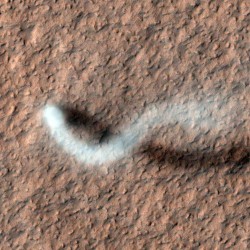 Nasan MRO-luotain on kuvannut tähän mennessä näyttävimmän pölypyörteen Marsissa. Sattumalta kuvaan osunut pyörre on halkaisijaltaan noin 30 metriä ja kohoaa varjon perusteella mitattuna yli 800 metrin korkeuteen.