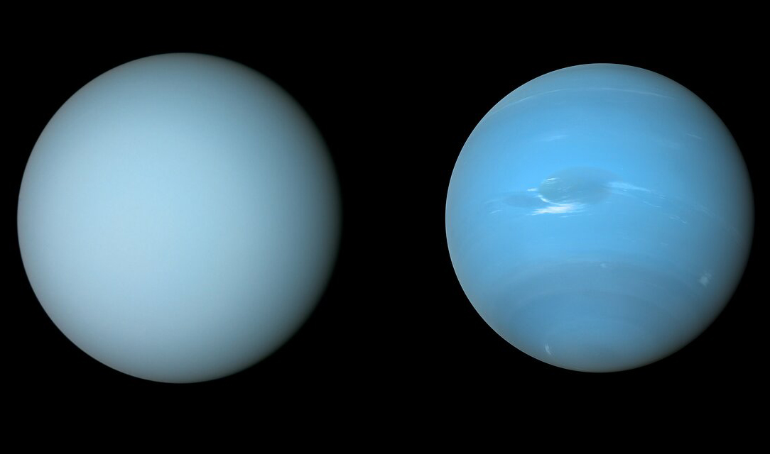 Neptunus ja Uranus ovat paljolti samanlaisia planeettoja. Niillä on sama massa, koko ja kaasukehän koostumus. Mitä tulee planeettojen väriin, Neptunus on selvästi sinisempi kalpeaan Uranukseen verrattuna.