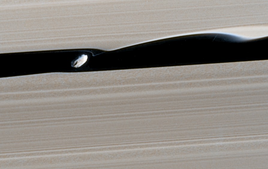 Oheisessa kuvassa on 8 kilometrin kokoisen Daphnis-kuun aikaansaamia aaltoja Saturnuksen renkaisiin.