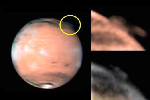 Marsista on havaittu valtavia pilvimäisiä muodostelmia, jotka näyttävät kurottautuvan korkealle planeetan kaasukehästä.