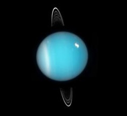Uranus on poikkeuksellinen planeetta, sillä se näyttää olevan kääntynyt kyljelleen. Uranuksen kiertoakseli on jopa 98 astetta kallellaan aurinkokunnan ratatasosta. Esimerkiksi Jupiterin akselin vastaava luku on 3 astetta ja kotoisan maapallomme akseli on kallellaan 23 astetta.
