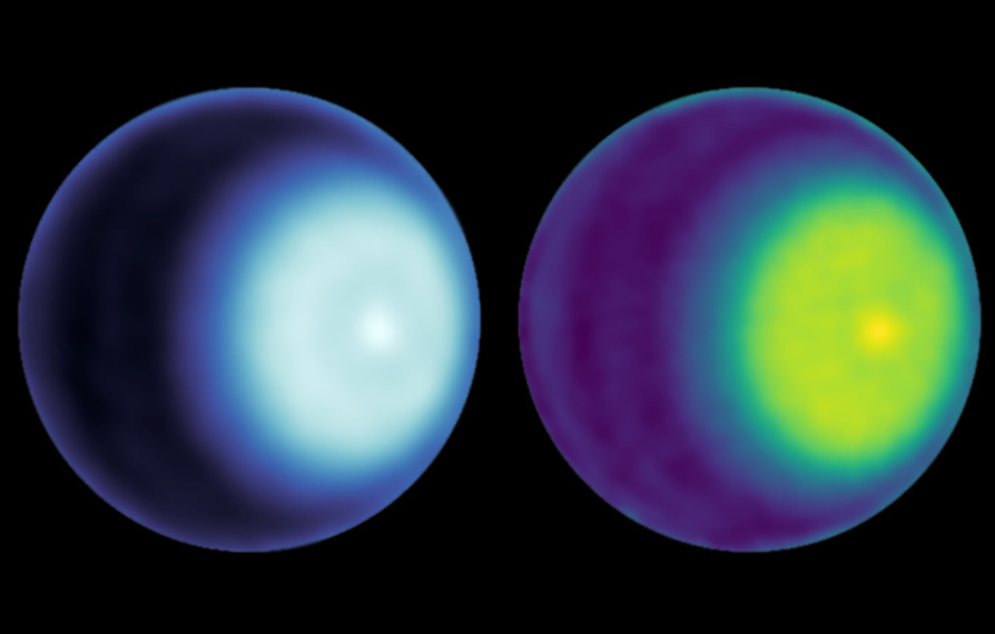 Uranuksen napa-alueen pyörremyrsky kuvattiin radioteleskoopilla