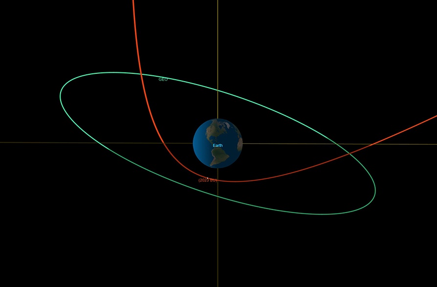 2023 BU kiertää Aurinkoa radalla, joka tuo sen lähimmillään 0,98-kertaiselle ja kauimmillaan 1,23-kertaiselle Maa–Aurinko-etäisyydelle. Kappaleen rataa aurinkokunnassa voi tutkia JPL:n sivujen tietokannasta.