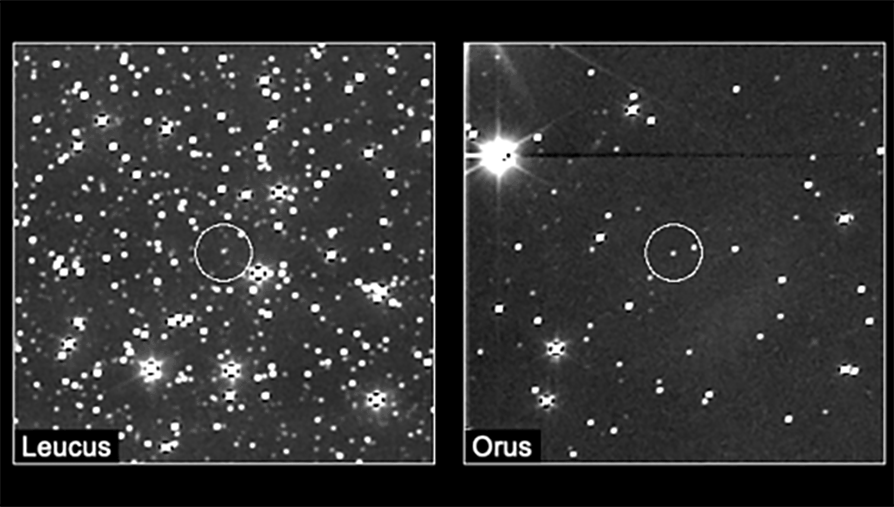 Yllä olevassa animaatiossa on kuvatuista kappaleista kaksi, Leucus ja Orus. Edellinen on 64 kilometrin kokoinen perunamainen kappale, jälkimmäinen pyöreämpi ja läpimitaltaan 50 kilometrin luokkaa.