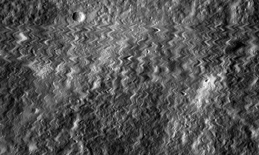 Tavallisesti LRO-aluksen kamerat tallentavat kirkkaita ja kauniita kuvia Kuusta. Lokakuussa 2014 kuvaan tuli outoa vääristymää aivan kuin yksi kameroista olisi tärähtänyt voimakkaasti.