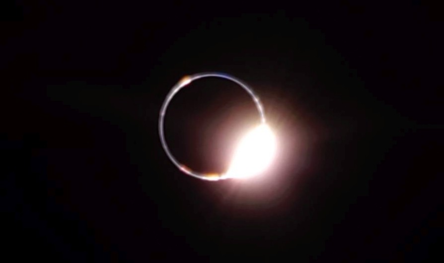 Oheisessa kuvassa Maan ilmakehä taittaa Auringon valoa ja tuo näkyviin renkaan planeettamme ympärille. Kuvan hetkellä Aurinko on juuri tulossa näkyviin Maan takaa ja saa aikaan "timanttisormukseksi" kutsutun ilmiön.