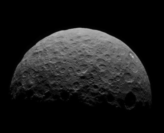 Oheisen kuvan Dawn otti 15. huhtikuuta 22 000 kilometrin korkeudelta. Kuvan erotustarkkuus on 3,1 kilometriä pikseliä kohden.