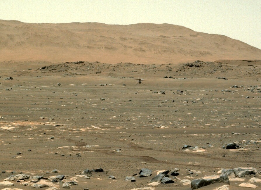 Nasa on myös vastaanottanut Ingenuityn omalla kamerallaan ottaman kuvan, jossa erottuu helikopterin varjo Marsin pinnalla.