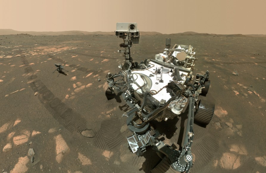Marsiin helmikuussa laskeutunut Perseverance testasi tiistaina selfie-kuvan ottamista. Robottikäsivarren päässä oleva kamera taltioi selfien mönkijästä ja helikopterista yhdessä.