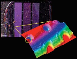 Atomivoimamikroskooppi tutkii hiukkasten muotoa kolmiulotteisesti skannaamalla niitä hyvin terävällä kärjellä, joka on jousen päässä. Tutkittavat hiukkaset lepäävät piikalvolle tehtyjen kuoppien päällä. Laite pystyy erottamaan yksityiskohtia, joiden koko on vain 100 nanometriä eli noin tuhannesosa ihmishiuksen paksuudesta.