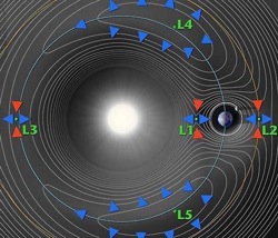 Aurinkoa tarkkailevat kaksi Stereo-luotainta ovat saapumassa niin sanottuihin Lagrangen pisteisiin (kuvassa L4 ja L5). Alueilla epäillään olevan useita maapallolle mahdollisesti vaarallisia asteroideja.