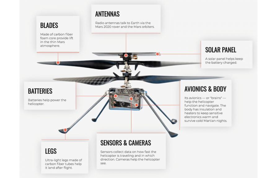 Marsin kaasukehän tiheys vastaa maapallon ilmakehää noin 30 kilometrin korkeudella. Tämän vuoksi kopterin roottorit ovat hieman leveämpiä kuin perinteisissä helikoptereissa.