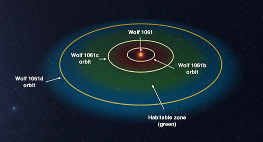 "Tämä on poikkeuksellisen kiinnostava löytö, koska kaikki kolme planeettaa ovat riittävän kevyitä ollakseen kivisiä ja kiinteäpintaisia. Lisäksi keskimmäinen planeetta, Wolf 1061c, on niin sanotulla elämänvyöhykkeellä, missä voi olla nestemäistä vettä ja mahdollisesti jopa elämää", uskoo Duncan Wright australialaisesta UNSW yliopistosta.