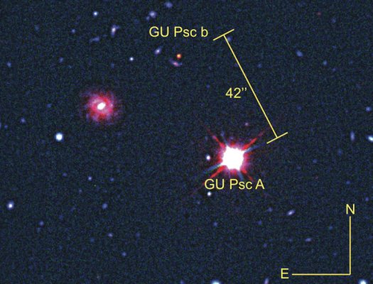 Planeetan emotähti GU Psc on nuori tähti, joka on massaltaan vain kolmanneksen Auringon massasta. Tutkijat kuvasivat tähteä eksoplaneettojen etsimiseksi suoraan infrapunakuvista, koska nuorten tähtien planeetat hohtavat voimakkaasti lämpösäteilyä.