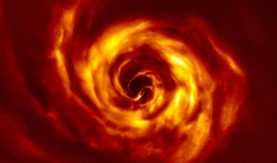 Nuoren AB Aurigae -tähden ympärillä on tiheä pölyn ja kaasun kiekko, josta tähtitieteilijät ovat havainneet huomattavan spiraalirakenteen. Selvästi erottuva kiekon vääntyminen voi olla ensimmäinen todiste siitä, että vauvaplaneetta on juuri syntymässä.