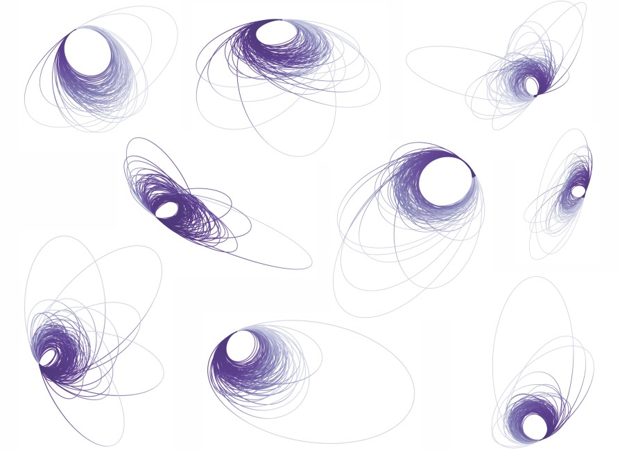 Kun tulokset piirretään kaavioon, erottuvat kappaleiden jakaumat selvästi toisistaan. Jättiläisplaneetat ovat suhteellisen samankaltaisesti ympyrämäisillä radoilla, kun taas ruskeiden kääpiöiden radat ovat yleensä selvästi elliptisiä ja niiden radoissa on paljon enemmän hajontaa.
