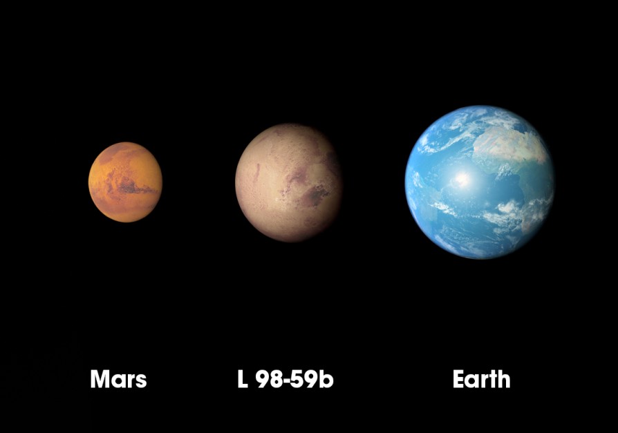 Maapalloa pienempi planeetta L 98-59b on nyt TESS-eksometsästäjän pienikokoisin löydös. TESSin odotetaan löytävän toiminta-aikanaan yhteensä 20 000 uutta eksoplaneettaa.