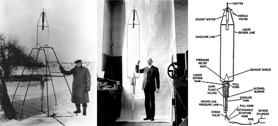 Maaliskuussa 1926 Goddardin rakentama nestemäistä polttoainetta käyttävä raketti nousi ensimmäistä kertaa taivaalle. Tämä tosin voi olla turhan mahtipontinen ilmaisu, sillä raketti pääsi vain reilun 12 metrin korkeuteen ja lensi ainoastaan 2,5 sekunnin ajan.