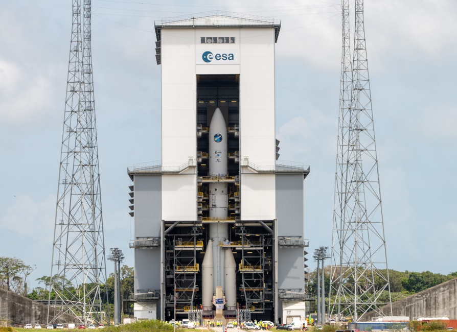 ESA iloitsee uuden kantorakettimallinsa virstanpylväästä. Ariane 6:n ensimmäinen testiversio seisoo nyt laukaisualustallaan Kouroun avaruuskeskuksessa Ranskan Guayanassa.