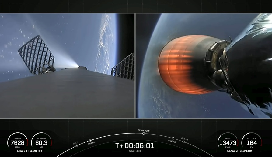 Vierekkäin näytetyt videokuvat sekä ensimmäisestä vaiheesta että toisesta vaiheesta yhdessä niiden nopeuksien ja korkeuksien kanssa selittävät hyvin laukaisun etenemistä. Starlink-satelliittien vapautus tapahtuu 1 tunti 38 minuuttia laukaisun jälkeen.