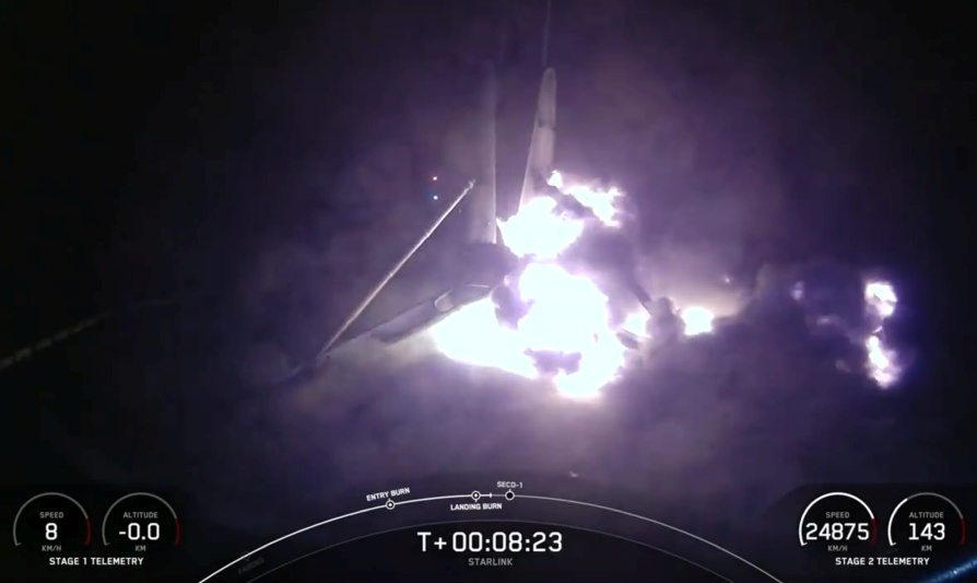 Eilen keskiviikkona Falcon 9 -kantoraketin laukaisu kuljetti Kaliforniasta avaruuteen Starlink-satelliitteja, jotka pääsivät halutulle radalle. Raketin ensimmäinen vaihe kuitenkin epäonnistui laskeutumisessaan, syttyi palamaan ja kaatui robottilaivan kannelle.