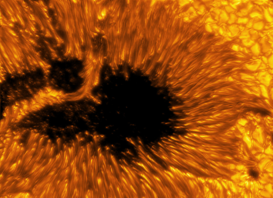 National Solar Observatory on julkaissut valikoiman havaintokampanjassa saatuja kuvia. Yllä on yksi uusista kuvista, joka esittää auringonpilkkua, kylmempää aluetta keskustähtemme pinnalla.