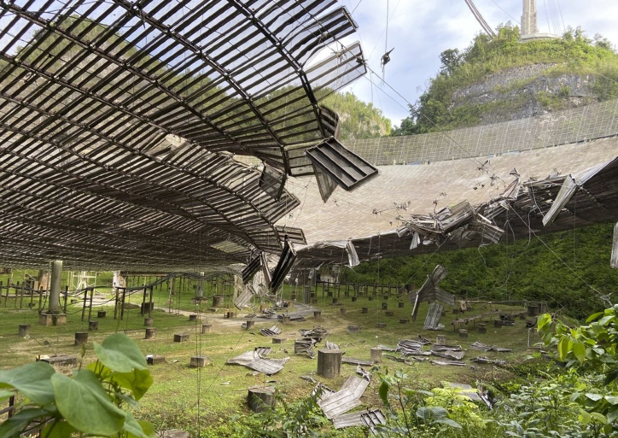 Arecibon radio-observatorion 305 metrin läpimittaiseen lautasantenniin tuli viime viikolla aukko, kun yksi sitä kannattelevista järeistä päävaijereista katkesi. Teleskooppi romahti noin 30 metrin laajuiselta alueelta.