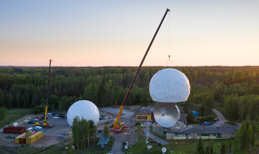 Metsähovin radiotutkimusaseman 14-metrinen radioteleskooppi on saanut uuden suojakuvun. Vaativa vaihto-operaatio tehtiin aamuyöllä, jotta tuuli ei päässyt haittamaan 20-metristen kupolien siirtelyä.