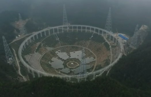 Kiinan kansallinen televisioyhtiö on julkaissut lennokkivideon, jolla esitellään rakenteilla olevaa maailman suurinta radioteleskooppia. Halkaisijaltaan 500 metrin kokoista kiinteää radioteleskooppia rakennetaan parhaillaan Guizhoun maakunnassa Etelä-Kiinassa.