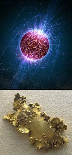 Uusi simulaatiotutkimus viittaa kullan ja muiden raskaampien alkuaineiden syntyneen pääasiallisesti neutronitähtien välisissä törmäyksissä. Aiemmin niiden on uskottu muodostuneen lähinnä massiivisten tähtien supernovaräjähdyksissä. Tähdet tuottavat normaalisti fuusioreaktioissaan alkuaineita vain rautaan asti.