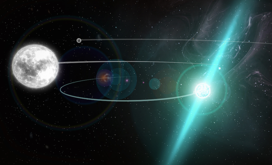 Asian selvittämiseksi kansainvälinen tutkimusryhmä seurasi kolmoistähtijärjestelmää, joka koostuu neutronitähdestä ja kahdesta valkoisesta kääpiötähdestä.