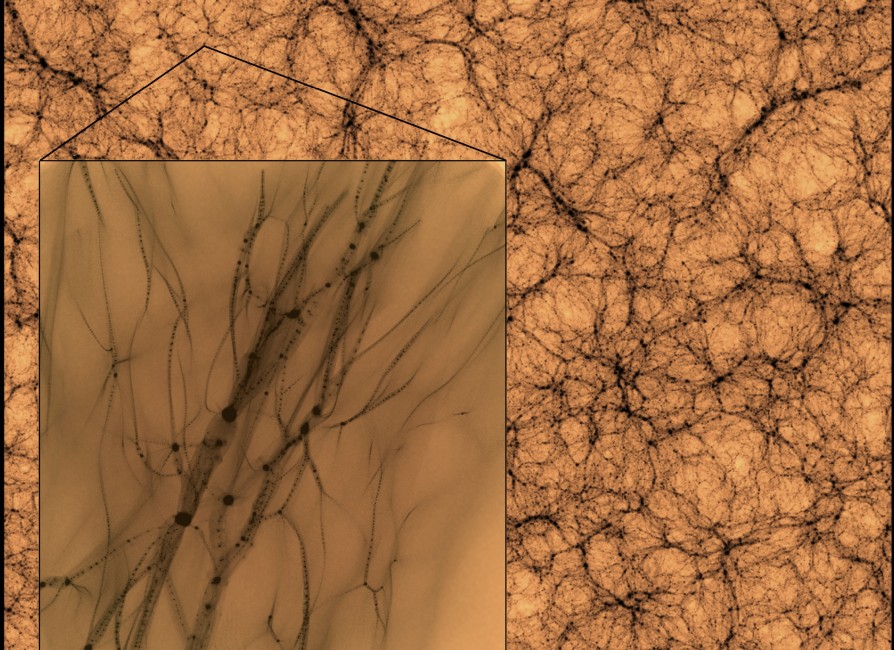 "Simulaatiomme mahdollisivat kosmisen verkon visualisoinnin. Kun sen säikeet kohtaavat, nähdään pieniä lähes pallomaisia pimeän aineen kokkareita", selittää Jie Wang NAOC:stä Pekingistä.