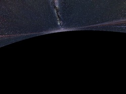 Viereisessä kuvassa havaitsija on jo syvällä mustassa aukossa. Alaosa on pimeä, koska aukon keskustan suunnasta edes valo ei pääse nousemaan ylöspäin. Ylhäältä aukkoon putoavan valon takia maisema ei kuitenkaan ole kokonaan musta.